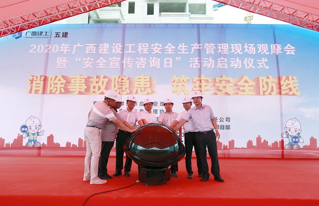 会上,叶建进、陈礼松、汪道应、张海耀等共同触摸启动球,启动2020年广西建设工程安全生产管理现场观摩会暨“安全宣传咨询日”活动。红星天悦项目代表作安全管理经验介绍。