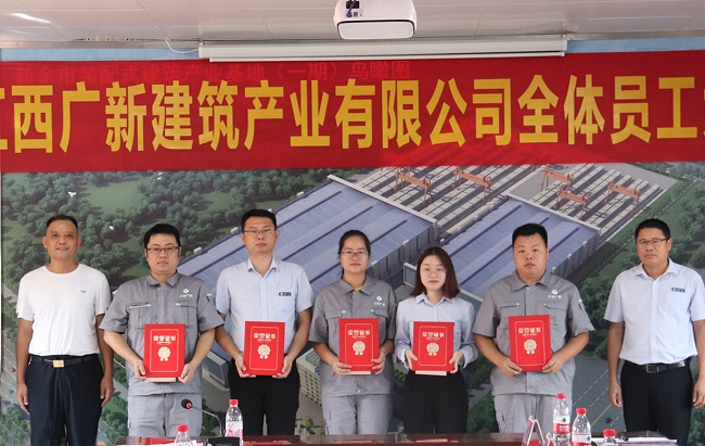 6月22日,江西广新建筑产业有限公司全体员工大会暨学习传达集团公司三届一次职代会精神专题会在新余装配基地会议室召开。新余市住房和城乡建设局副局长林祥忠、市建筑业管理局局长何祝生到会指导,并为获得表彰的先进单位、先进个人颁奖。公司党支部书记、董事长、总经理黄平,总顾问张建宇,副总经理丁立民、王少奇出席,副总经理黄旭主持会议。