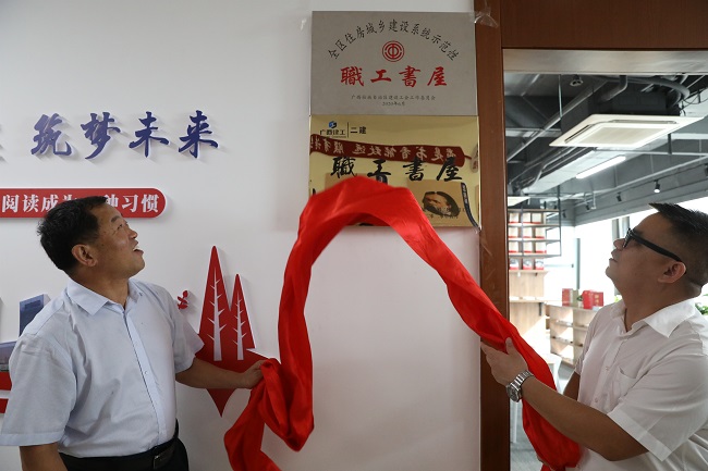 活动上,黄志坚与王伟华共同为“全区住房和城乡建设示范性职工书屋”揭牌,并举行书籍捐赠仪式,自治区建设工会工作委员会向公司“职工书屋”共计捐赠书籍1000册。