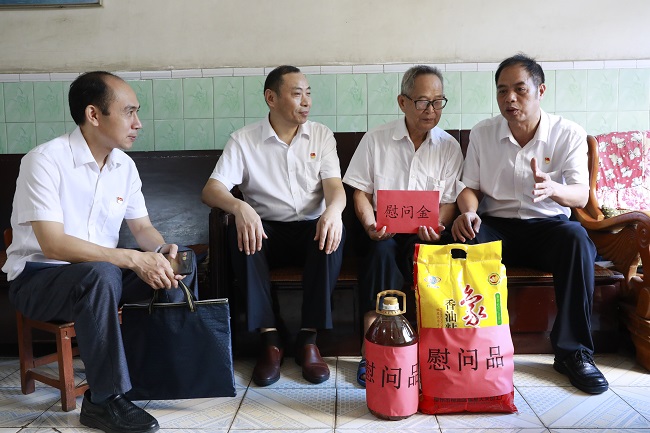 6月28日,在建党99周年来临之际,广西建工集团第二安装建设有限公司党委书记、董事长潘海洪,党委副书记、纪委书记、工会主席黄水保深入公司白沙大院、河东大院生活区慰问老党员、困难党员,给他们送去慰问金、慰问品和公司党委的关怀与节日的问候。
