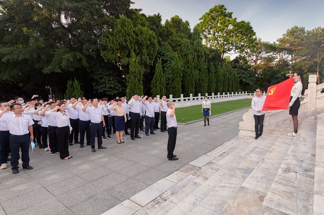 邓少新在革命烈士纪念碑下领誓,带领全体党员重温入党誓词,并作题为《铭记党史 坚定信念 筑牢“红色堡垒”》的党课,鼓励党员继承和发扬革命优良传统,笃定前行,砥砺奋进,为实现公司高质量发展贡献力量。对如何成就新时代国企党员的价值追求,他提出三点要求。一是从追寻伟大征程、回顾伟大贡献中感悟中国共产党的伟大光荣正确。历史事实证明,中国共产党的领导地位是历史和人民的必然选择。二是从追忆先烈先进、品读光辉事迹中感悟共产党人信仰的无穷力量。共产党人的信仰是一种英勇无畏的革命信念,是一种造福人民的无私信念,是一种催生力量的精神信念,是一种坚忍不拔的执著信念。三是从对照历史现实、接续奋斗前行中感悟新时代共产党员的价值追求。作为新时代国有企业的党员职工,要有珍惜荣誉、再接再厉的奋进精神,有立足本职、干事创业的责任担当,有只争朝夕、不负韶华的使命追求,为中华民族的伟大复兴,为建设有中国特色社会主义事业的伟大征程作出新的更大贡献。