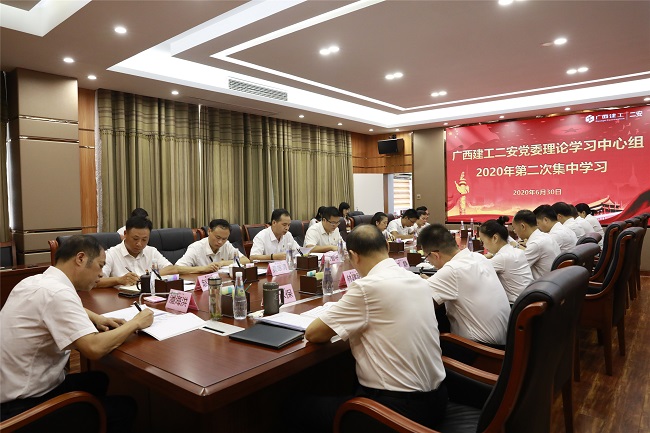 6月30日,广西建工集团第二安装建设有限公司党委理论学习中心组2020年第二次集中学习会在六楼会议室召开。公司党委书记、董事长潘海洪主持并讲话。领导班子成员赵泽俊、黄水保、莫雄清、林建明、江静、陶兴南参加。