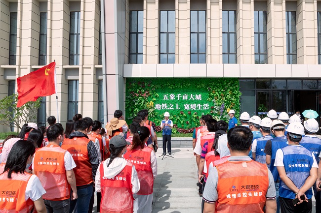 7月17日,广西大都投资有限公司党总支到建工城项目开展“下沉一线当先锋 志愿服务展风采”党员奉献日主题活动。公司党总支书记、董事长邓少新出席活动并致辞。党总支副书记、副总经理、工会主席胡朝春主持,副总经理李世强参加。