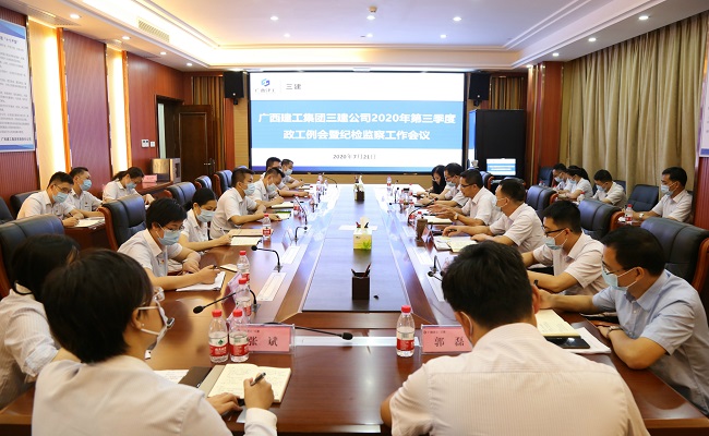 7月21日,广西建工集团第三建筑工程有限责任公司在十一楼会议室召开第三季度政工例会暨纪检监察工作会议。公司党委书记、董事长欧志永,党委副书记、纪委书记、工会主席罗振中参加会议。