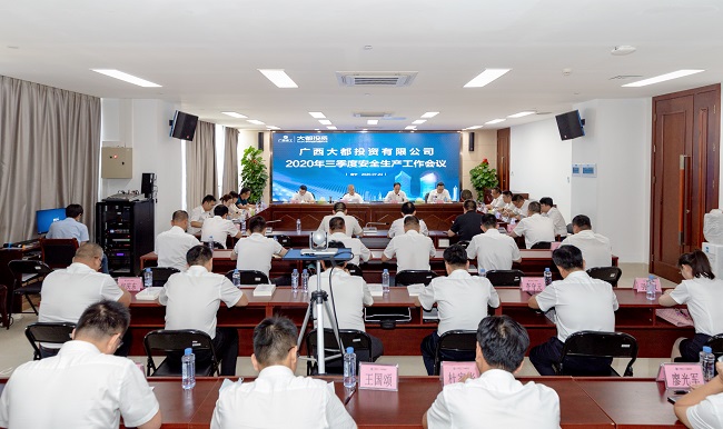 7月24日,广西大都投资有限公司2020年三季度安全生产工作会议在总部6楼会议室召开。公司党总支书记、董事长邓少新出席并讲话,党总支副书记、副总经理、工会主席胡朝春作安全生产工作报告。副总经理陈嶷主持,副总经理李世强出席。