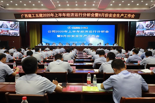 7月27日,广西建工集团第五建筑工程有限责任公司2020年上半年经济运行分析会暨8月份安全生产例会在五建大厦14楼会议室召开。会议传达集团公司2020年上半年经济运行分析会精神,总结公司上半年经济运行情况,分析存在的问题和面临的形势,研究部署下半年工作。公司党委书记、董事长黄鼎龙出席并讲话,党委副书记、总经理蒙勇作2020年上半年经济运行分析报告,领导班子成员彭业波、黄诚、李能斌、陈永、董家胜、陶礼智、岑锦秀、徐祥出席,何显文主持。