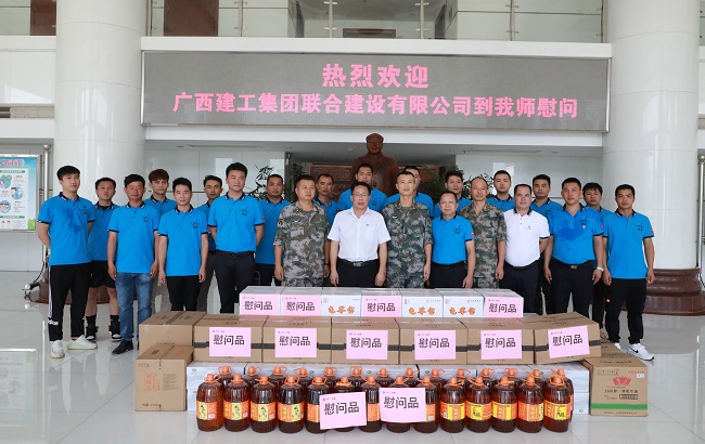 7月31日,广西建工集团联合建设有限公司党委书记、董事长陆彪一行到广西陆军预备役步兵师开展“八一”军民共建活动,送上公司对人民子弟兵的关怀和问候。预备役师装备部科长周明扬,联建公司副总经理陈昱任参加。