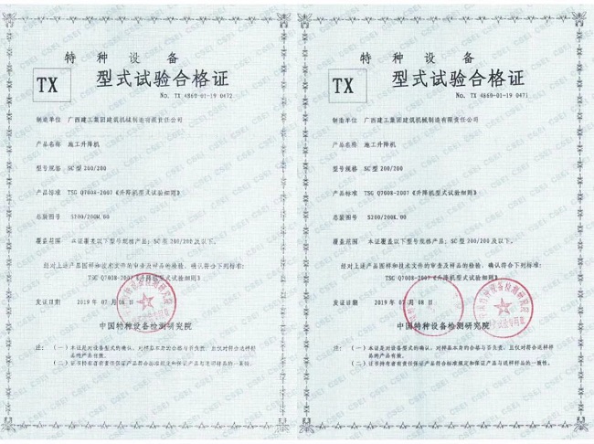 2019-07-25建机公司取得两项施工升降机型式试验合格证