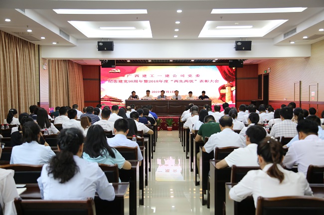 2019-07-02一建公司党委召开纪念建党98周年暨2018年度“两先两优”表彰大会
