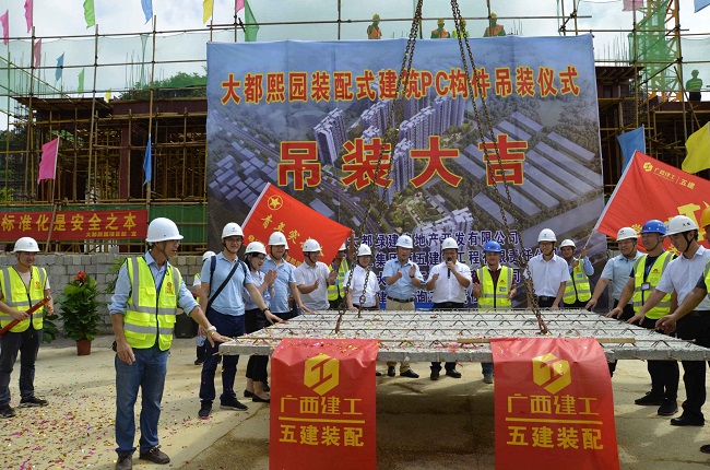 2019-07-08五建公司大都熙园项目举行首批PC构件吊装仪式