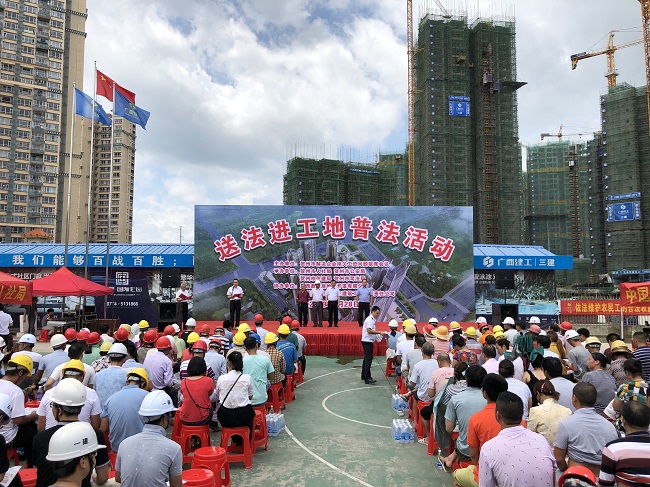 2019-07-01贺州市“送法进工地”普法活动在三建公司项目举行