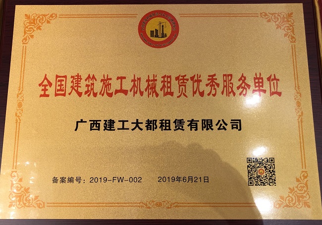 2019-06-24大都租赁公司荣获全国建筑施工机械租赁优秀服务单位