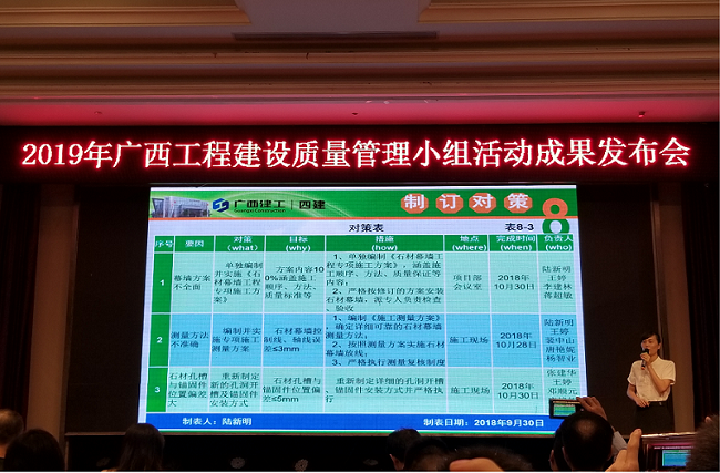 2019-04-22联建公司8项QC成果获广西工程建设优秀QC小组一类