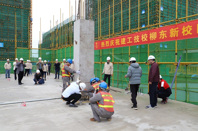 2019-04-03柳州市首个装配式公建项目预制柱吊装成功