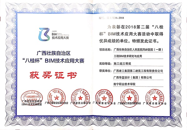 2018-11-30二建公司在广西BIM技术应用大赛中荣获两奖项