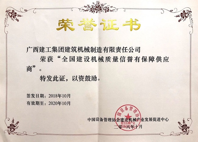 2018-11-07建机公司荣获“全国建设机械质量信誉有保障供应商”称号