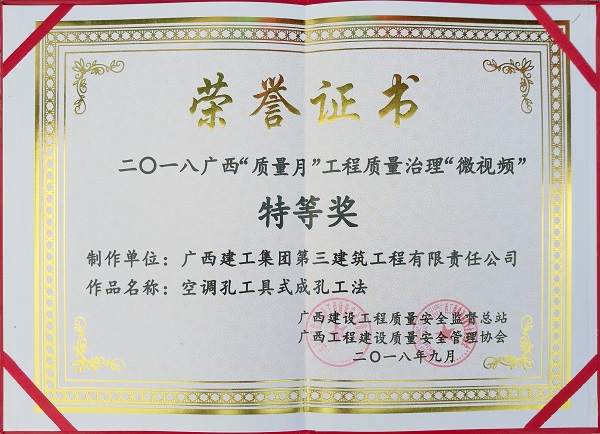 2018-09-28三建公司微视频获全区“质量月”微视频大赛特等奖