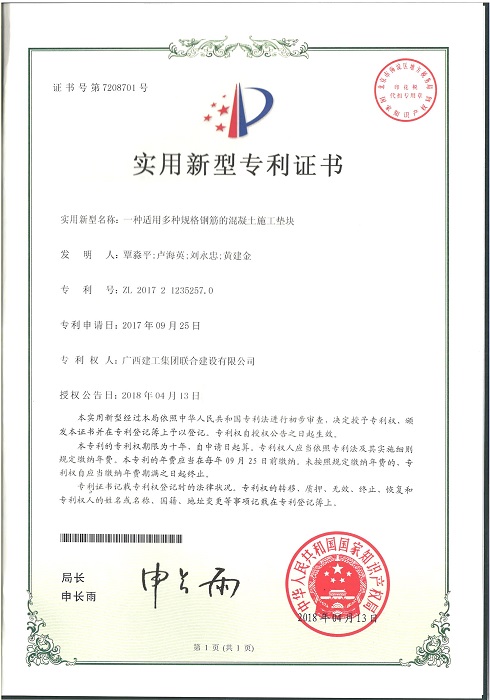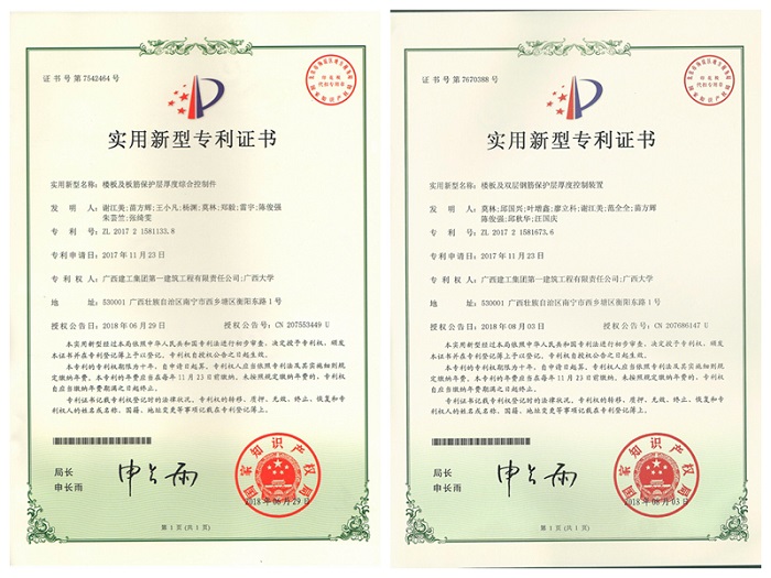2018-08-29一建公司获两项国家实用新型专利授权