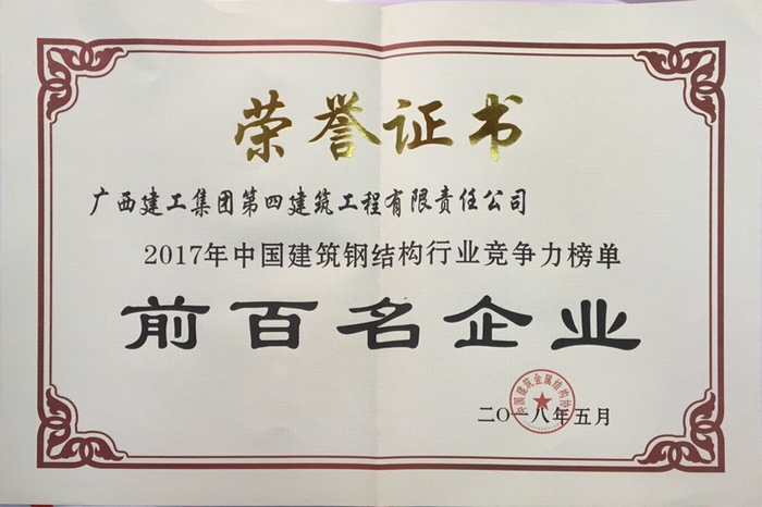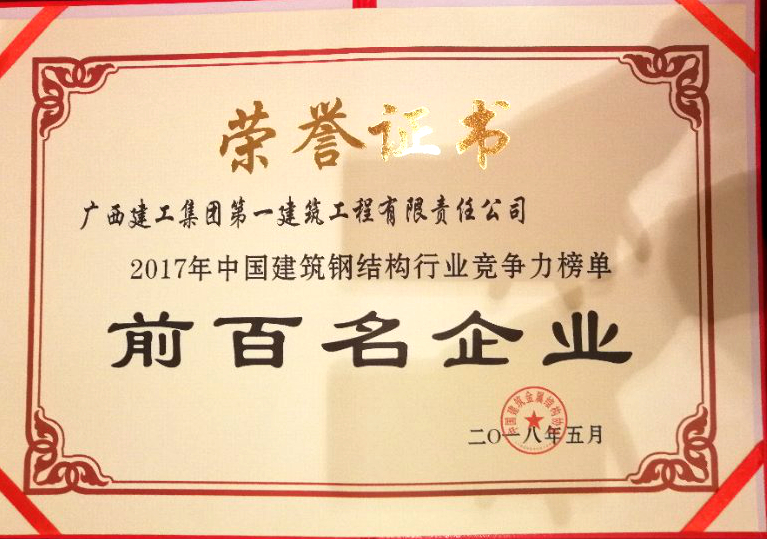 2018-05-24一建公司获评“2017年度中国建筑钢结构行业竞争力榜单前百名企业”