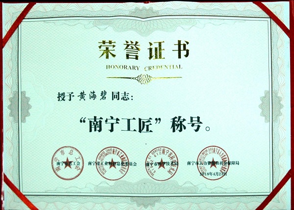 2018-05-20建机公司黄海碧获南宁市首批“南宁工匠”称号