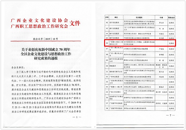2020-01-16二建公司论文获全区企业文化建设和思想政治工作研究成果优秀奖
