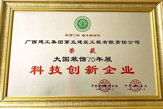 2019-12-31五建公司荣获“大国装饰70年展科技创新企业”称号