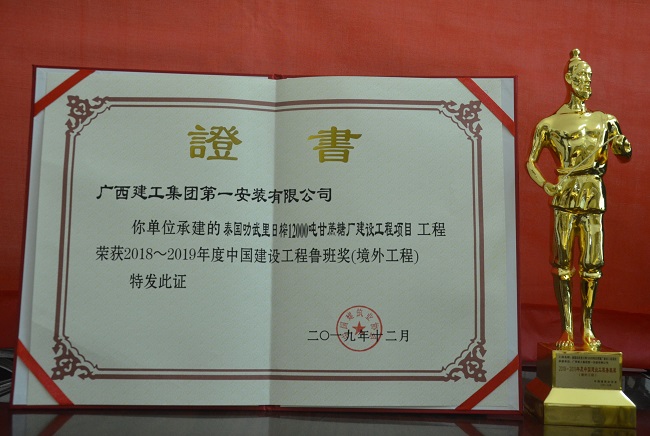 2019-12-13一安公司泰国叻武里糖厂项目荣获“鲁班奖”