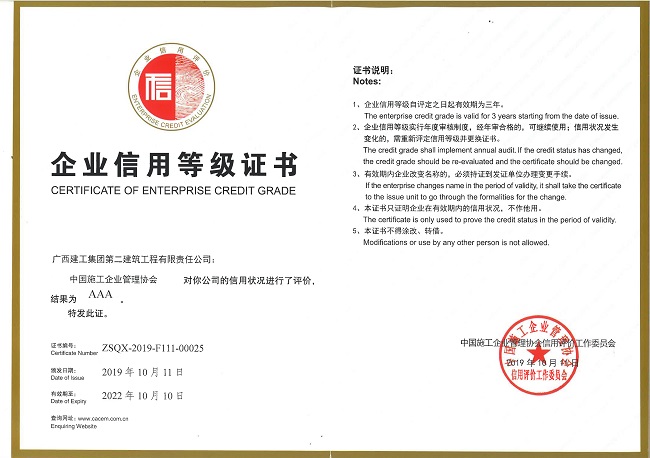 2019-12-05二建公司荣获“工程建设企业社会信用评价AAA级企业”称号