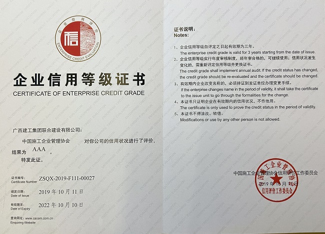 2019-12-06联建公司连续7年获评“工程建设企业社会信用评价AAA级信用企业”称号