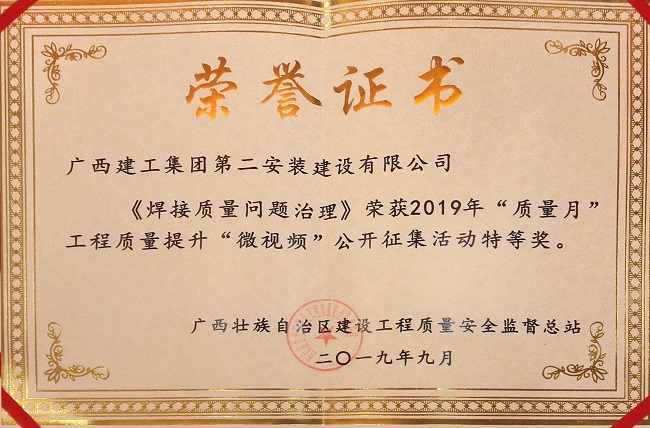 2019-09-23二安公司荣获自治区“质量月”工程质量提升“微视频”征集活动特等奖