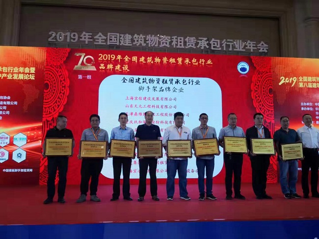 2019-09-26大都租赁公司获“全国建筑物资租赁承包行业脚手架品牌企业”称号