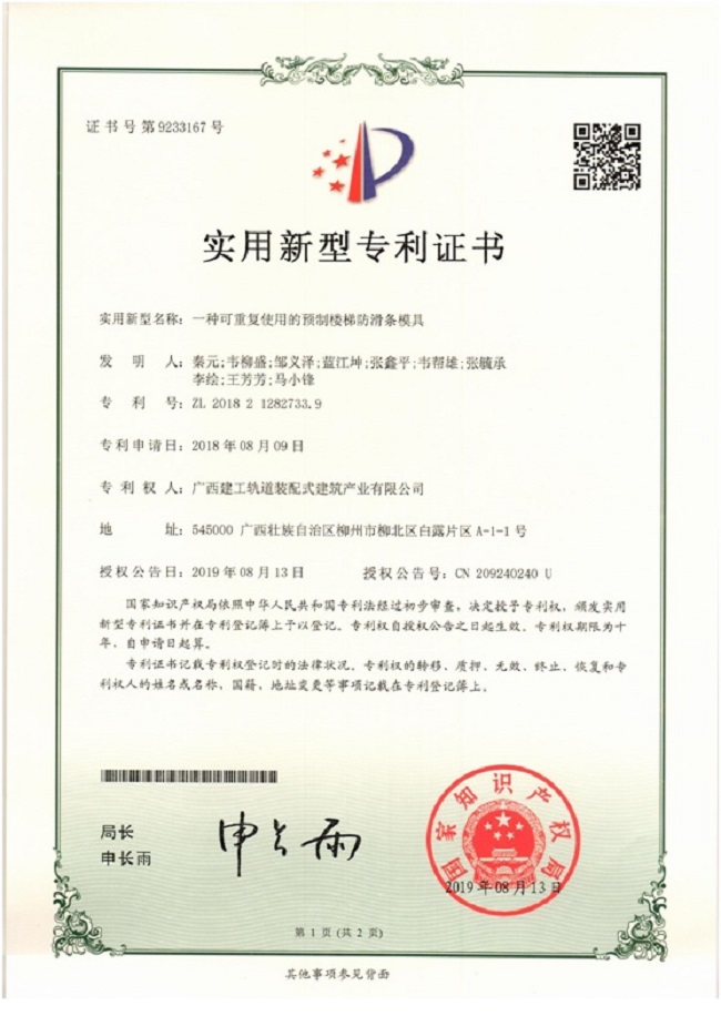 2019-08-31轨道装配公司获一项实用新型专利授权