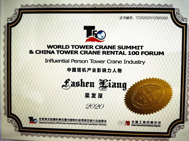 2020-11-25梁发深获评“2020年中国塔机产业影响力人物”