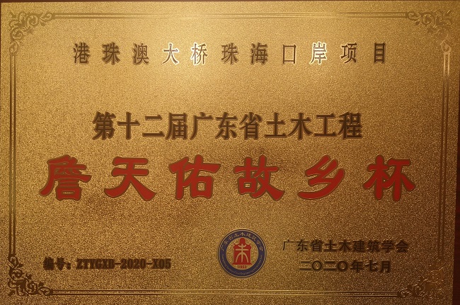 2020-09-01五建公司港珠澳大桥珠海口岸项目荣获“詹天佑故乡杯奖”